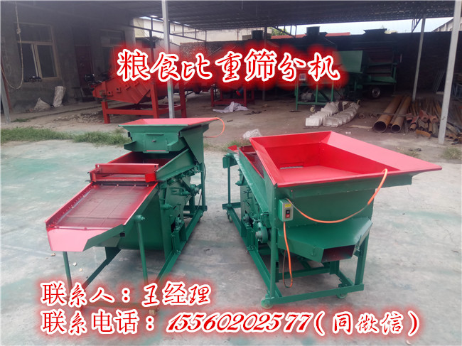 比重篩分機是有比重篩將物料中雜物分離開來,在然后物料落入篩網上,在將物料篩分。