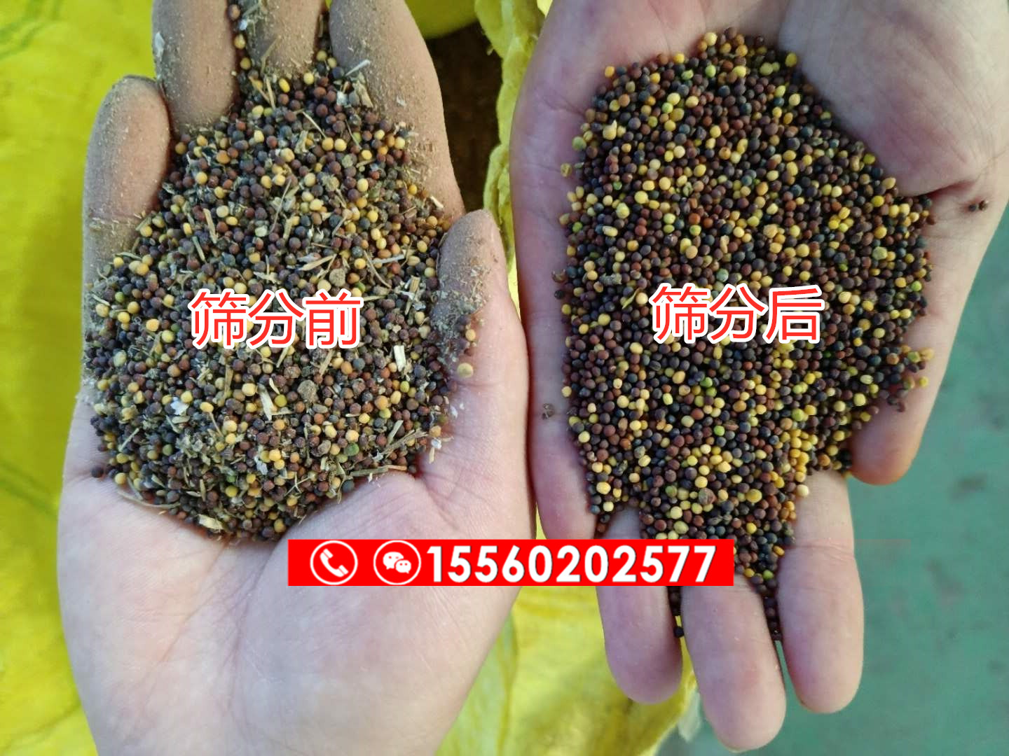 油菜籽成熟以后。一般都是鋪在馬路上。通過汽車的碾壓把里邊的油菜籽給壓出來。然后農民們再用掃把把油菜籽掃在一起。由于油菜籽在馬路上所以里邊的土、還有碎秸稈會比較多。原來大家都是用簸箕一點一點的把油菜籽里邊的雜質弄出來。干凈是干凈了,就是產(chǎn)量太小。我廠設計了一臺電動的油菜籽篩選機。該機只需要通上電源就可以使用了。