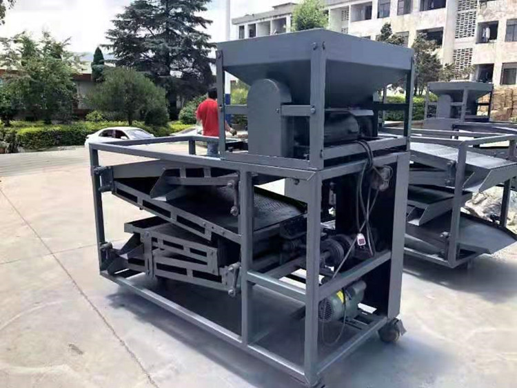 原枝花椒投進料斗后--------粉碎裝置將原枝花椒進行粉碎,將枝葉殼籽分別剝離下來--------通過下料器一起落到篩面上進行分離篩分---------一層將篩出來的是大枝干、梅花椒、石子,復試篩網篩出來的是花椒枝--------二層篩出來的是花椒籽,椒籽出來的地方有風機,將里面輕的雜質篩選出來-------三層是為篩分椒枝設計,整層篩出來都是花椒枝------底層篩出來的是花椒殼,復試篩網是塵土雜質等。